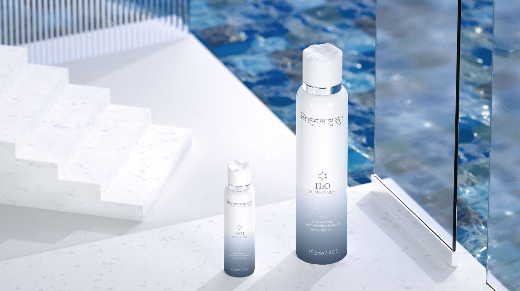 整體設計風格清新、簡約、干凈、給人耳目一新的視覺感受,獨特的瓶型設計將產品的特性展示的淋漓盡致。